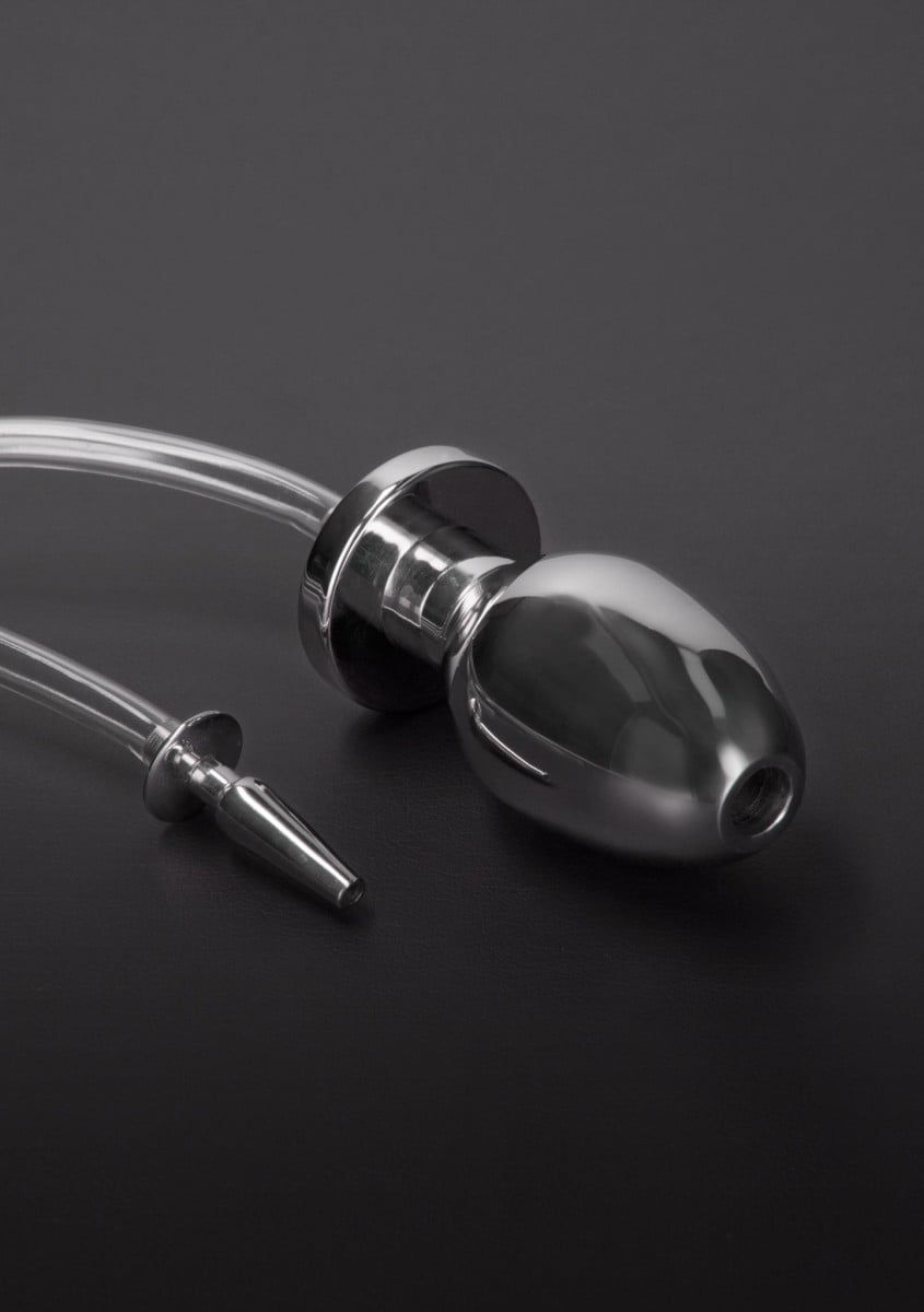 Tuto hračku z nerezové oceli značky Slave4master si oblíbí všichni příznivci piss hrátek. Dutý penis plug je připevněný k 90 cm dlouhé hadičce z průhledné gumy. Zaveďte jej pomocí lubrikantu do penisu a připojte druhý konec hadičky k análnímu kolíku z nerezové oceli – ten zaveďte do análu vašeho suba a vzrušující piss hrátky mohou začít.