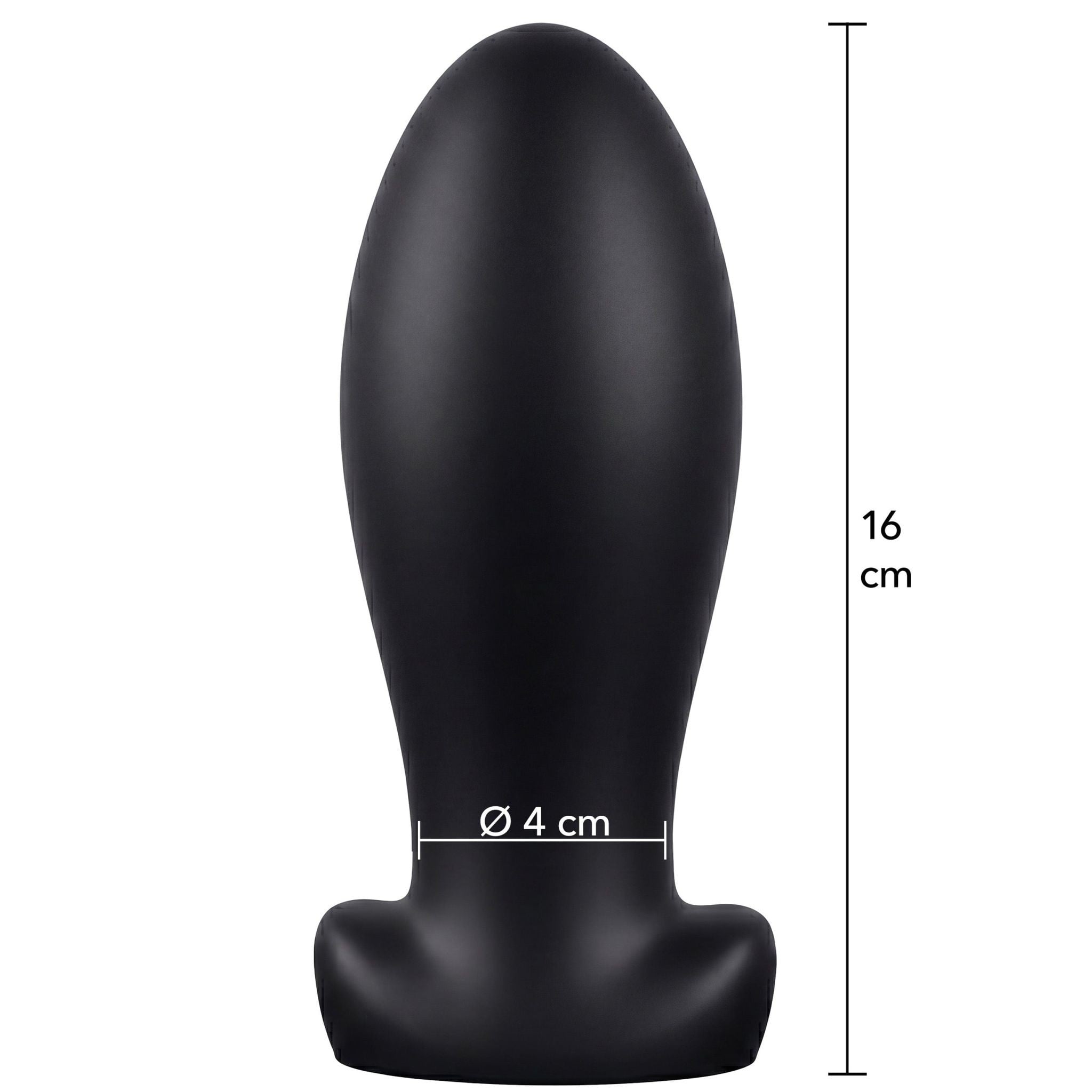 Silikonový anální kolík navržený pro intenzivní pocit plnosti a dokonalé roztažení. Díky širokému průměru a vyšší hmotnosti vytváří výrazný tlak při nošení. Kolík je měkký a poddajný, se širokou základnou pro bezpečné použití. Celková délka 16 cm, použitelná délka 14 cm, průměr 6,3 cm, průměr nad základnou 4 cm. Více informací