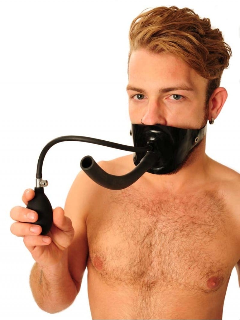 Nafukovací roubík s trubicí pro piss či jinou tekutinu dle vašeho uvážení. Délka gumového řemínku je nastavitelná. Vyroben ze silného černého latexu. Více informací